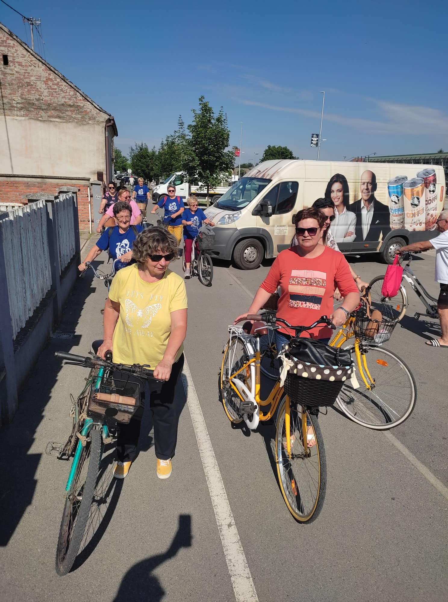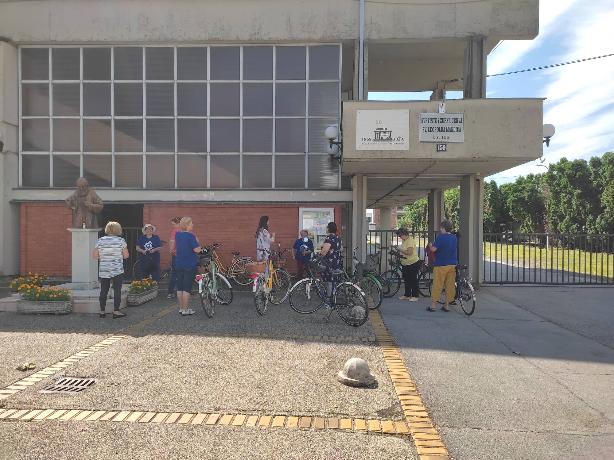 U okviru projekta Zajedno u zajednici Općine Čepin organizirana je biciklijada od Centra za kulturu do župe sv. Leopolda Bogdana Mandića. Predvođeni voditeljicama projekta, Mandom i Ines, pridružili smo se biciklijadi te na taj način podržali rad projekta koji doprinosi boljoj kvaliteti života naših umirovljenika. Uz laganu vožnju i razgovor naše su umirovljenice bile spremne i na dužu rutu. Uvijek rado sudjelujemo u ovakvim aktivnostima te kao Zelena knjižnica podržavamo provođenje kvalitetnog vremena na otvorenom.