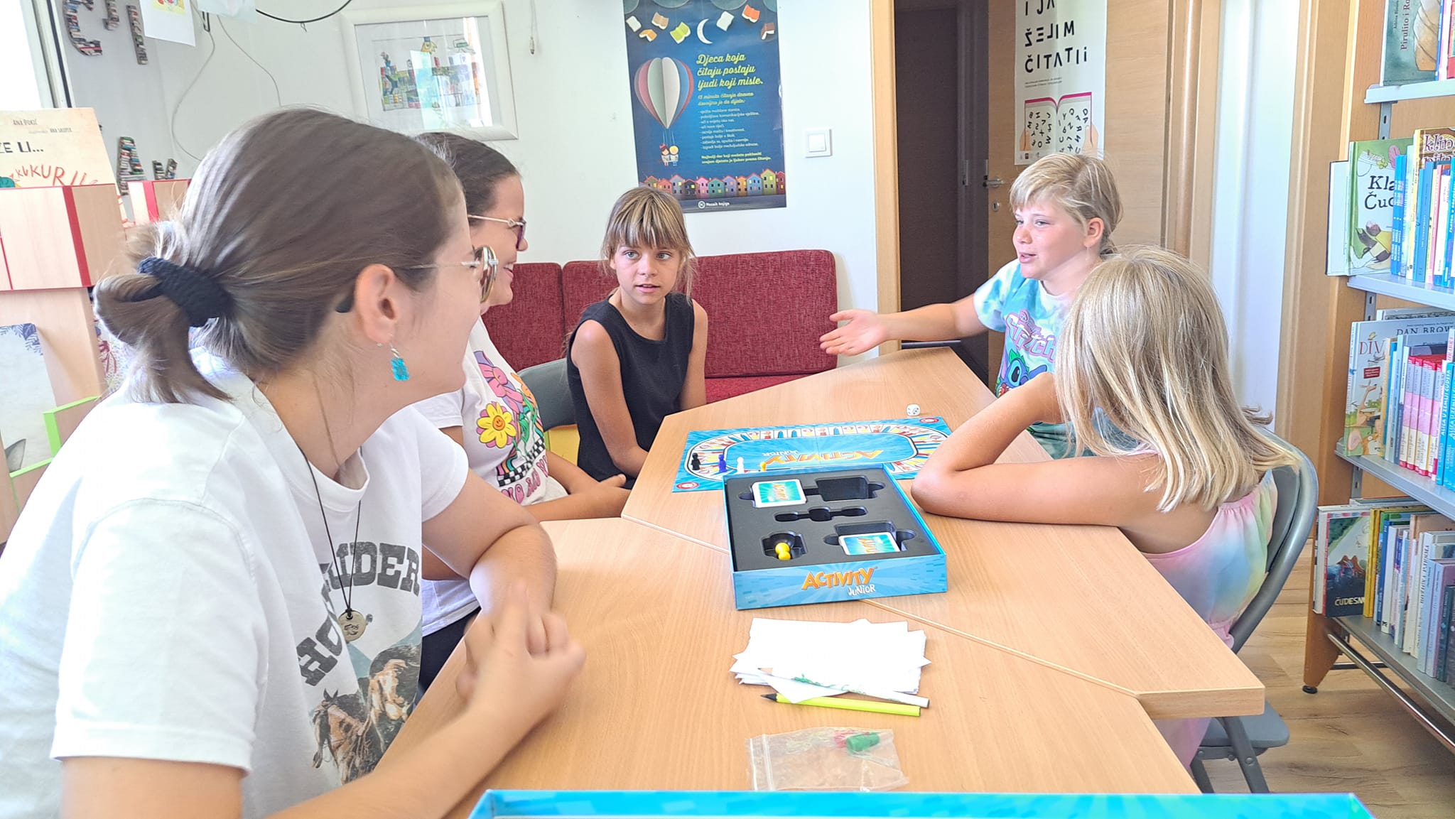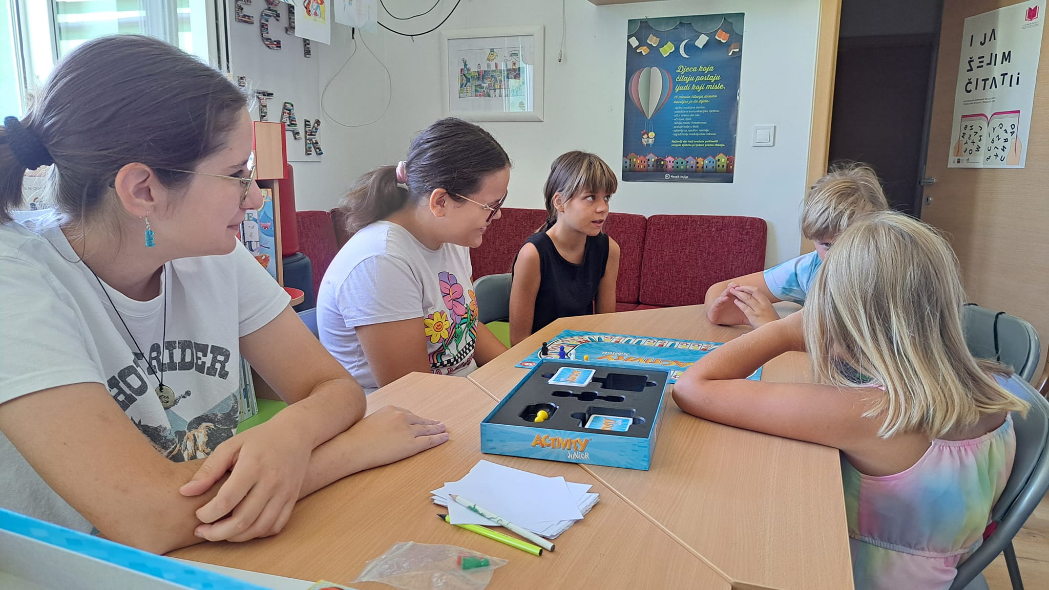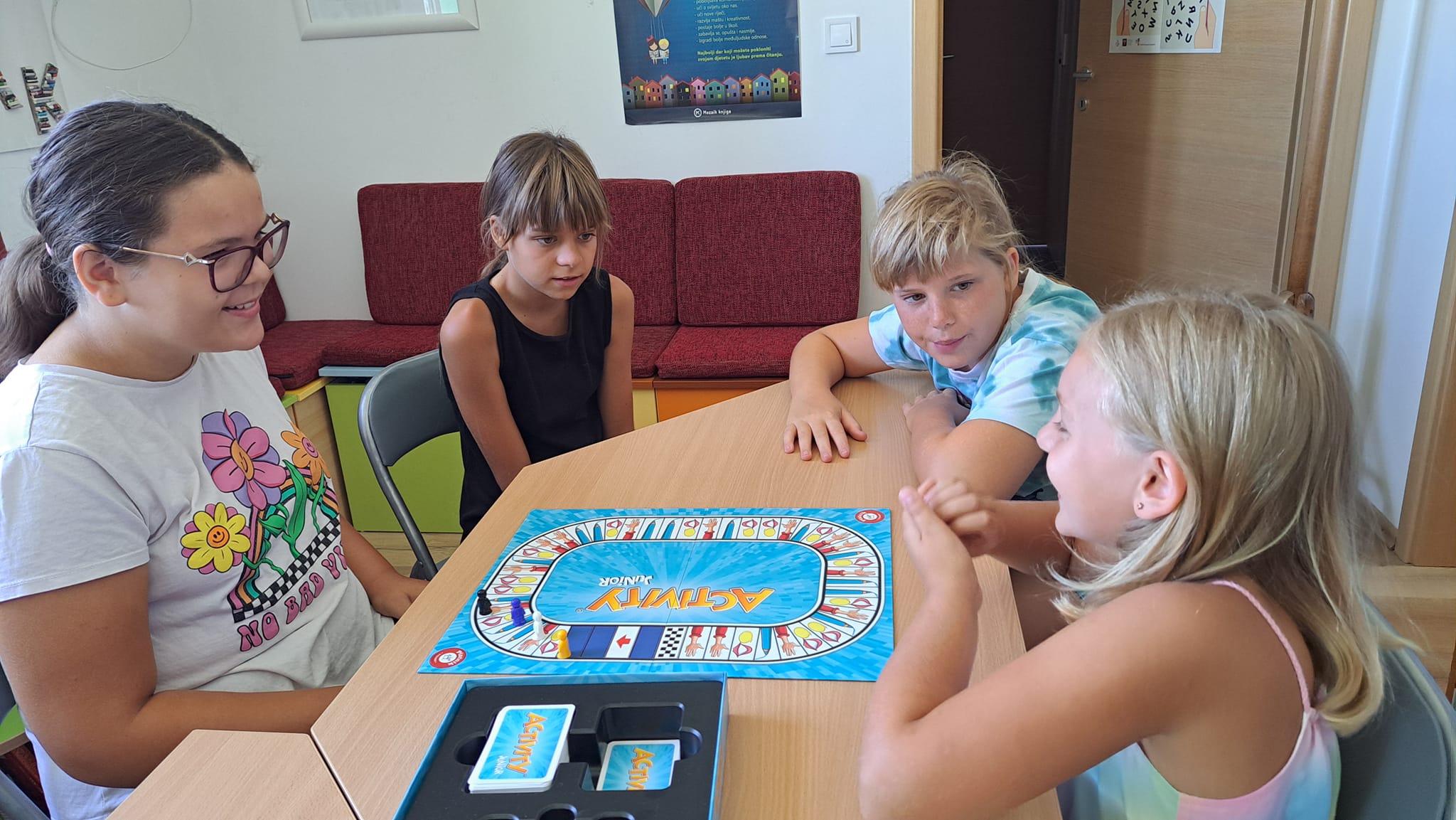 Djevojčice su igrale igru Activity junior koja im se veoma svidjela. Uz zabavu, ponešto smo i naučili. Trudile su se što bolje objasniti svoje zadane pojmove crtanjem, objašnjavanjem ili pantomimom. Naravno pogađate, najzabavnija je bila pantomima, tijekom koje se mogao čuti iskren osmijeh djevojčica.