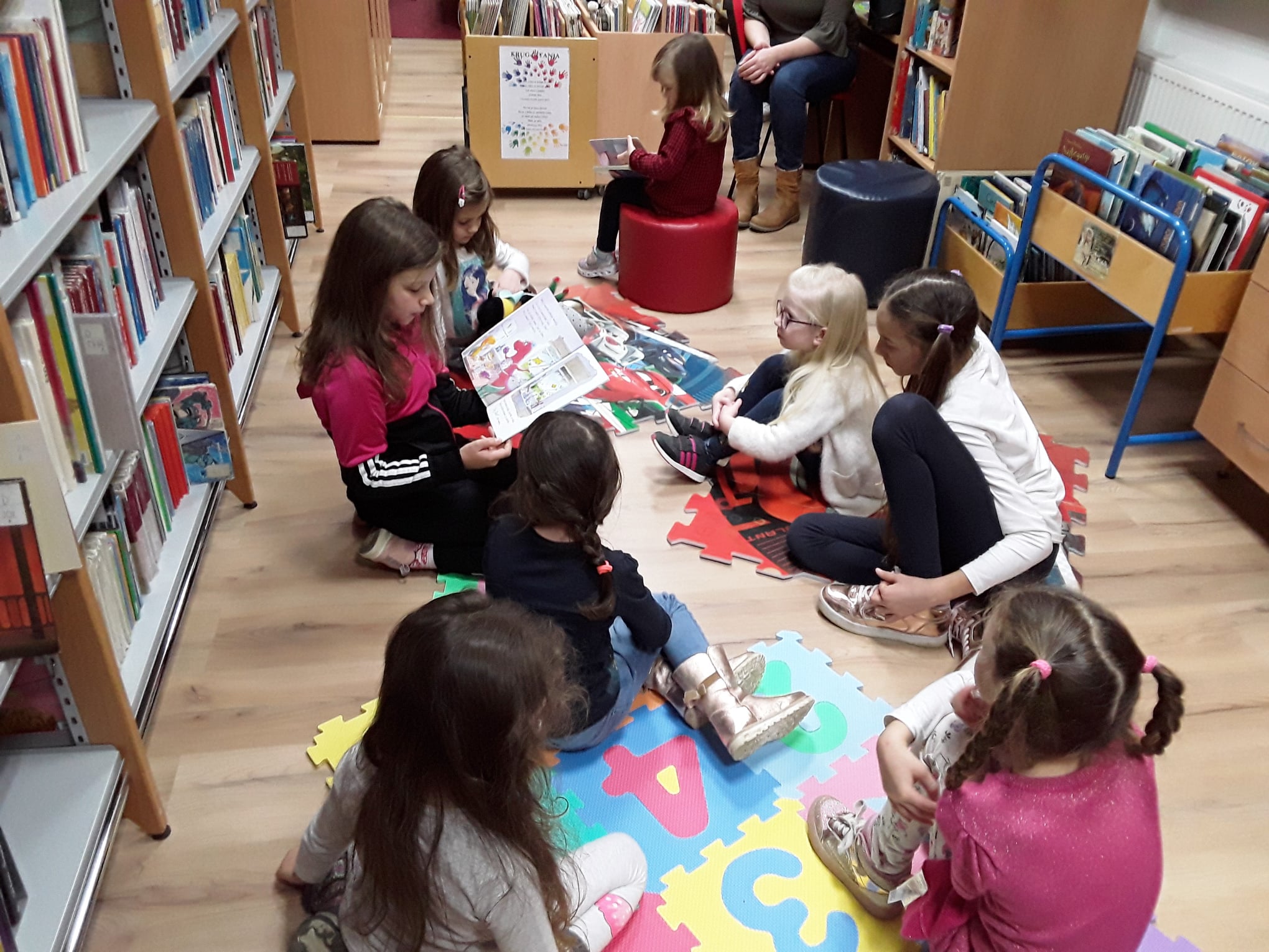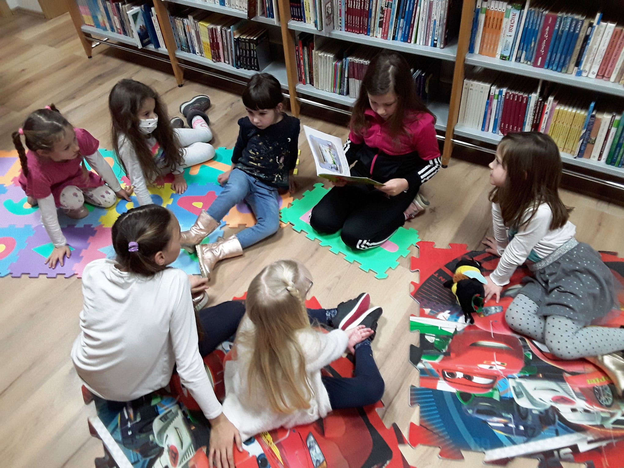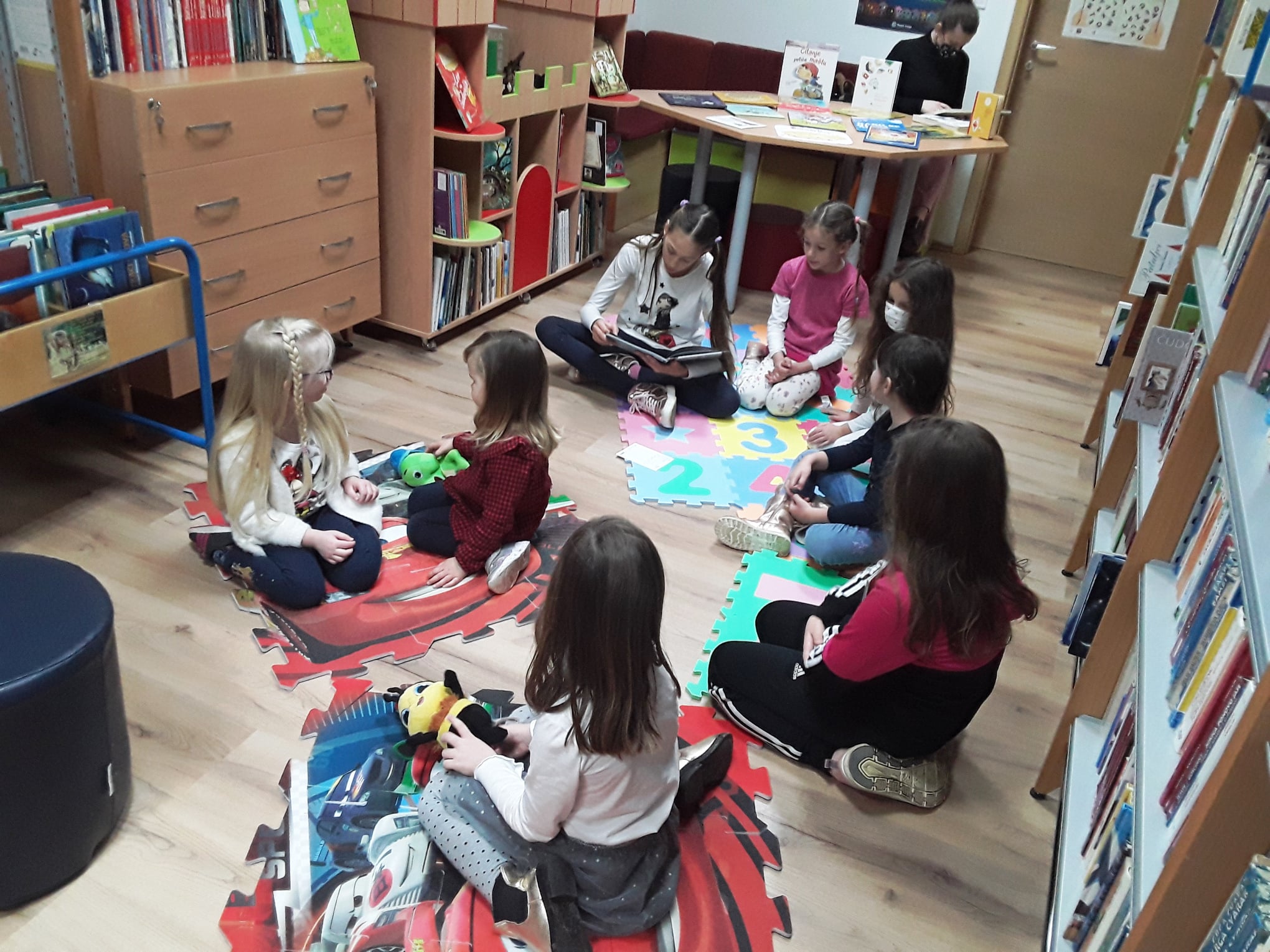 Lana Barišić je pročitala slikovnicu “Kako je zeko zavolio knjižnicu”, potom njezina, dvije godine mlađa, sestra Nika “Ježevu kućicu”, a Eva Mandić je ponijela i pročitala svoju dragu slikovnicu koja se i ostalim djevojčicama jako svidjela.