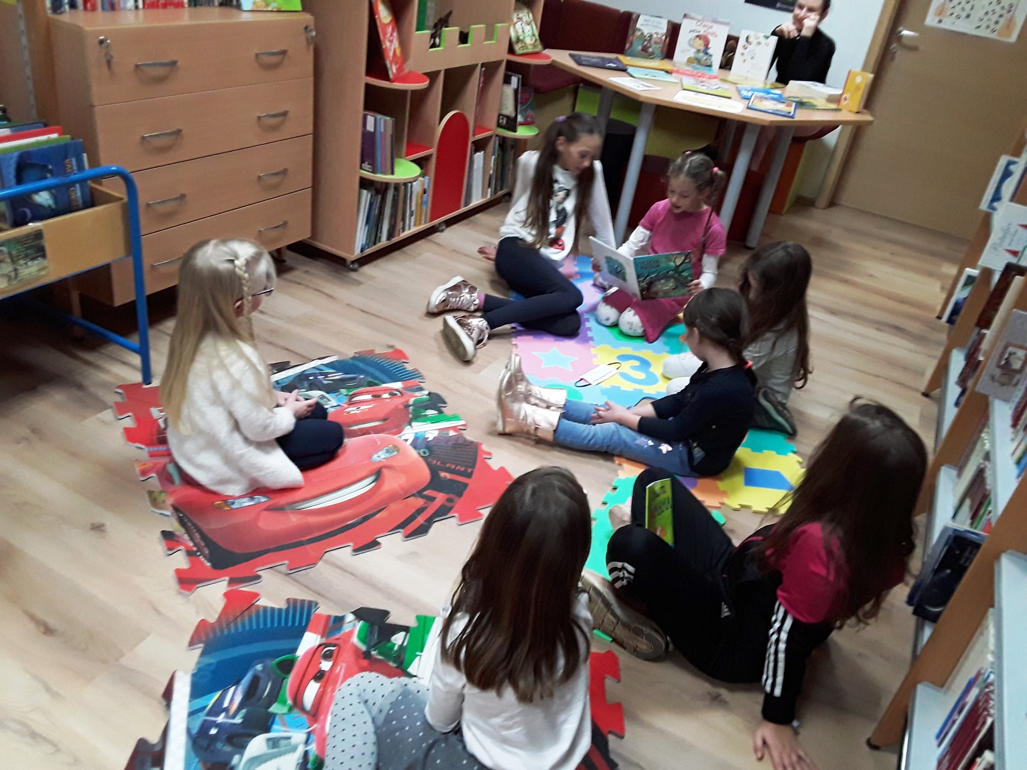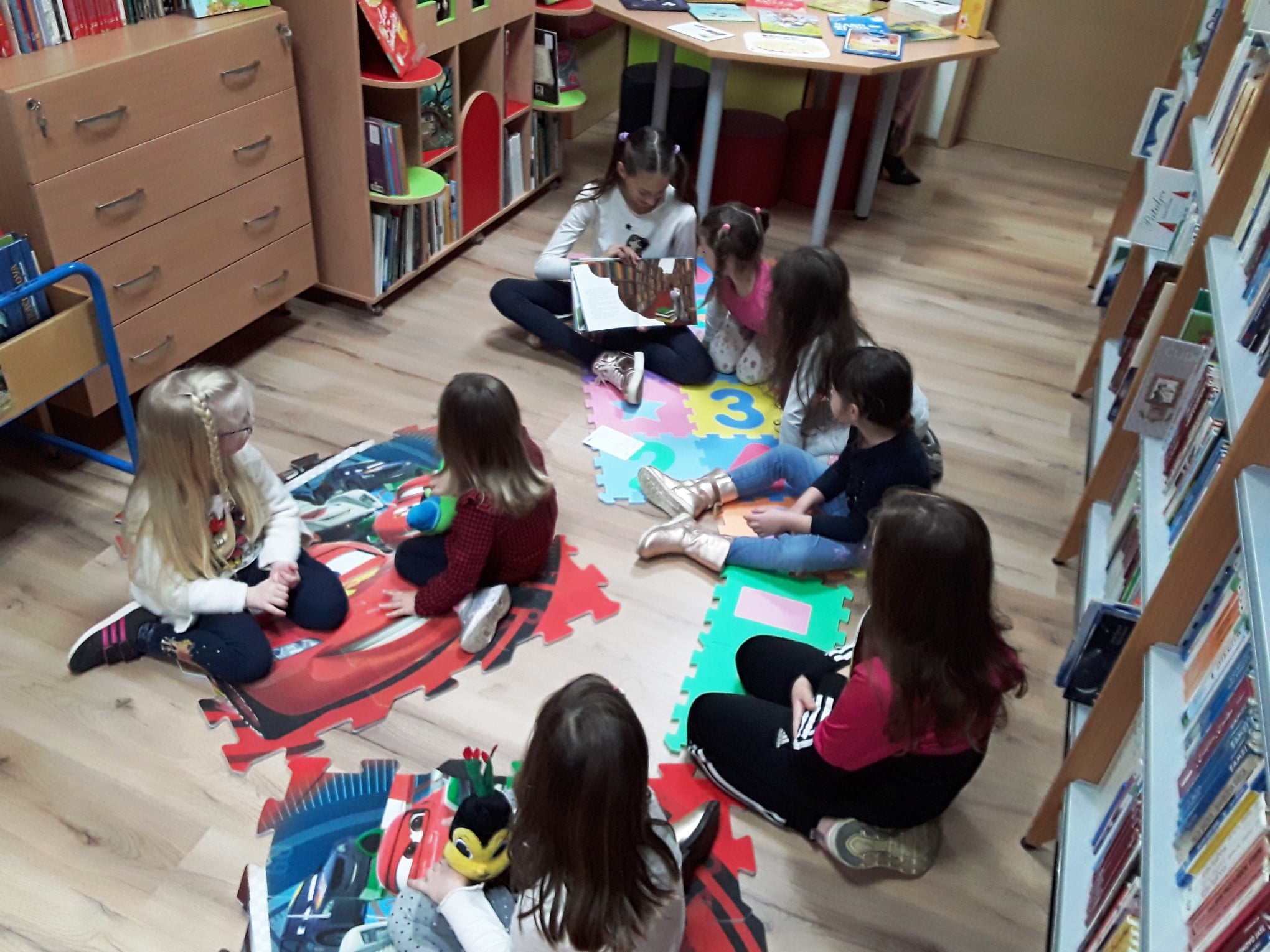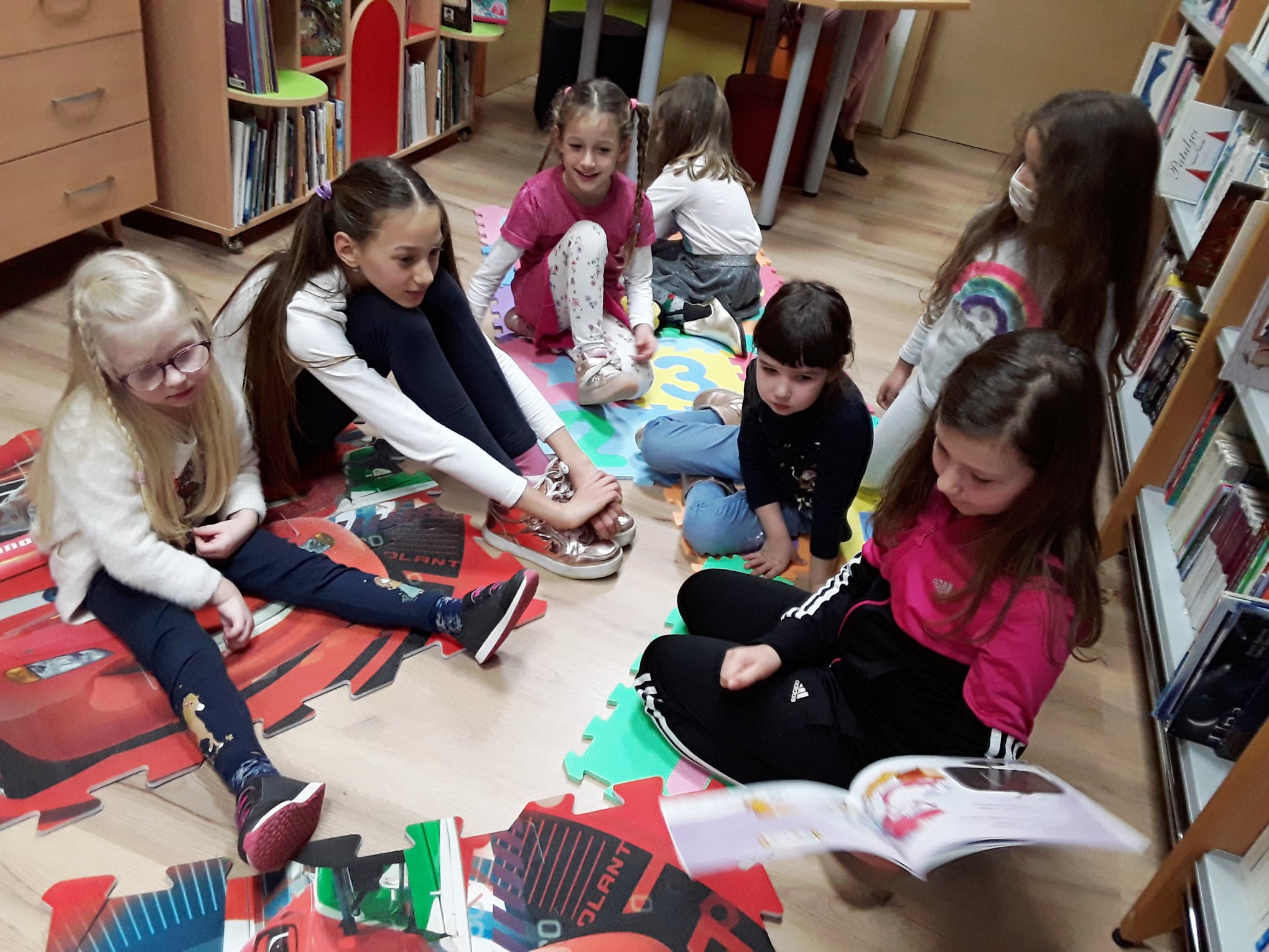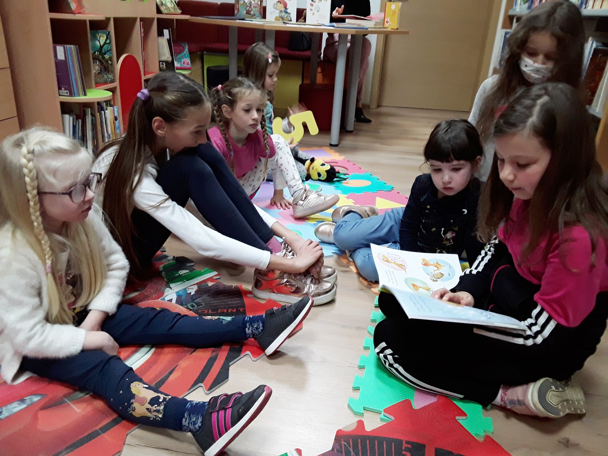 Lana Barišić je pročitala slikovnicu “Kako je zeko zavolio knjižnicu”, potom njezina, dvije godine mlađa, sestra Nika “Ježevu kućicu”, a Eva Mandić je ponijela i pročitala svoju dragu slikovnicu koja se i ostalim djevojčicama jako svidjela.