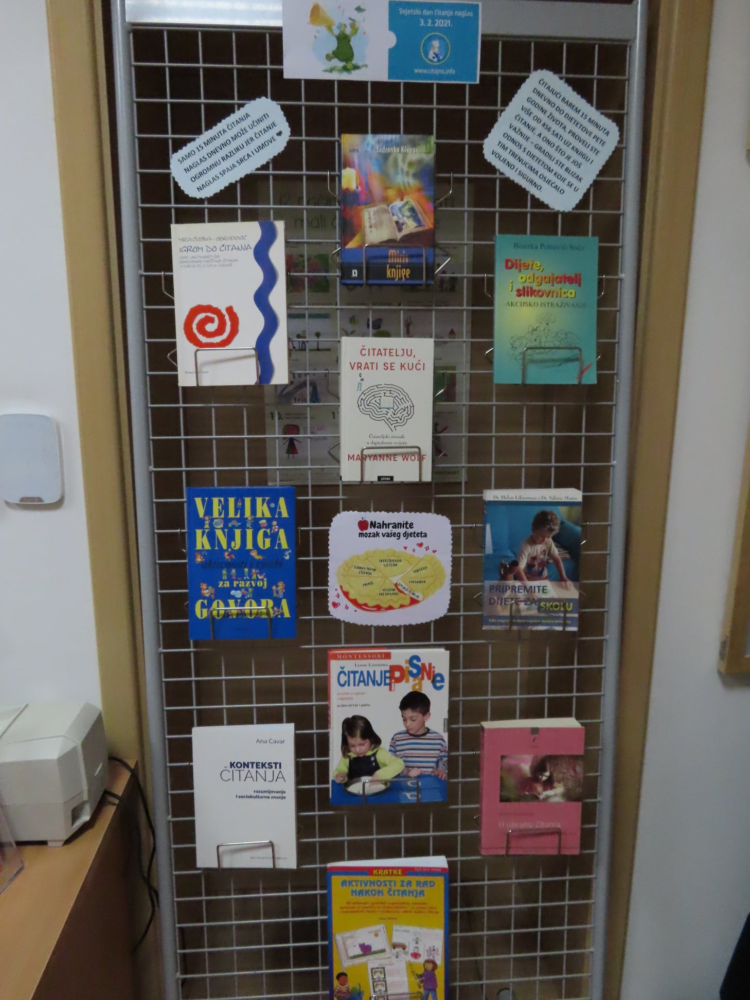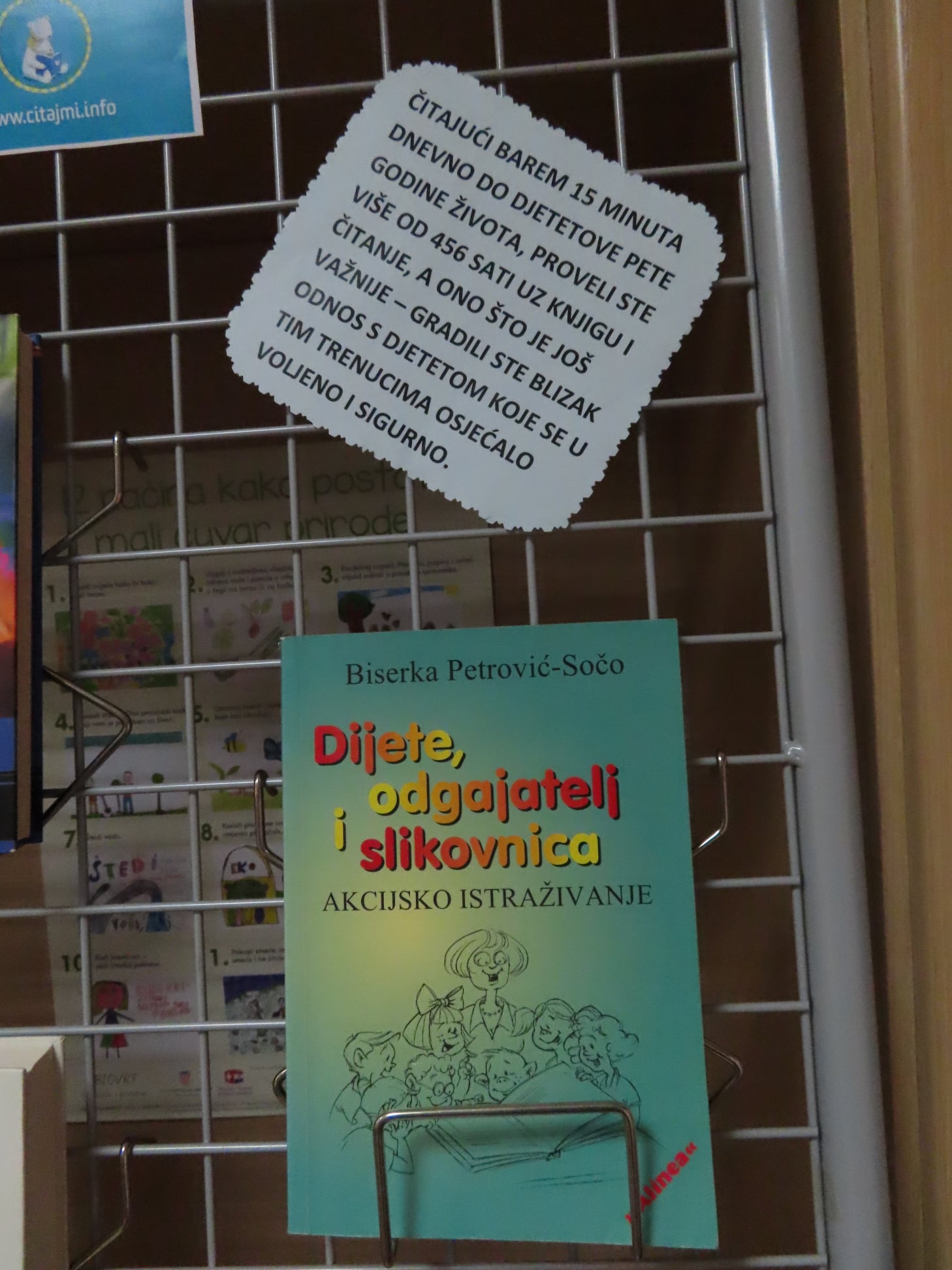 Djeci smo priredili izložbu slikovnica koje promoviraju čitanje, knjige i knjižnice, a roditeljima priručnike o dobrobitima čitanja i tehnikama kako poticati i razvijati ovu lijepu naviku u djece.