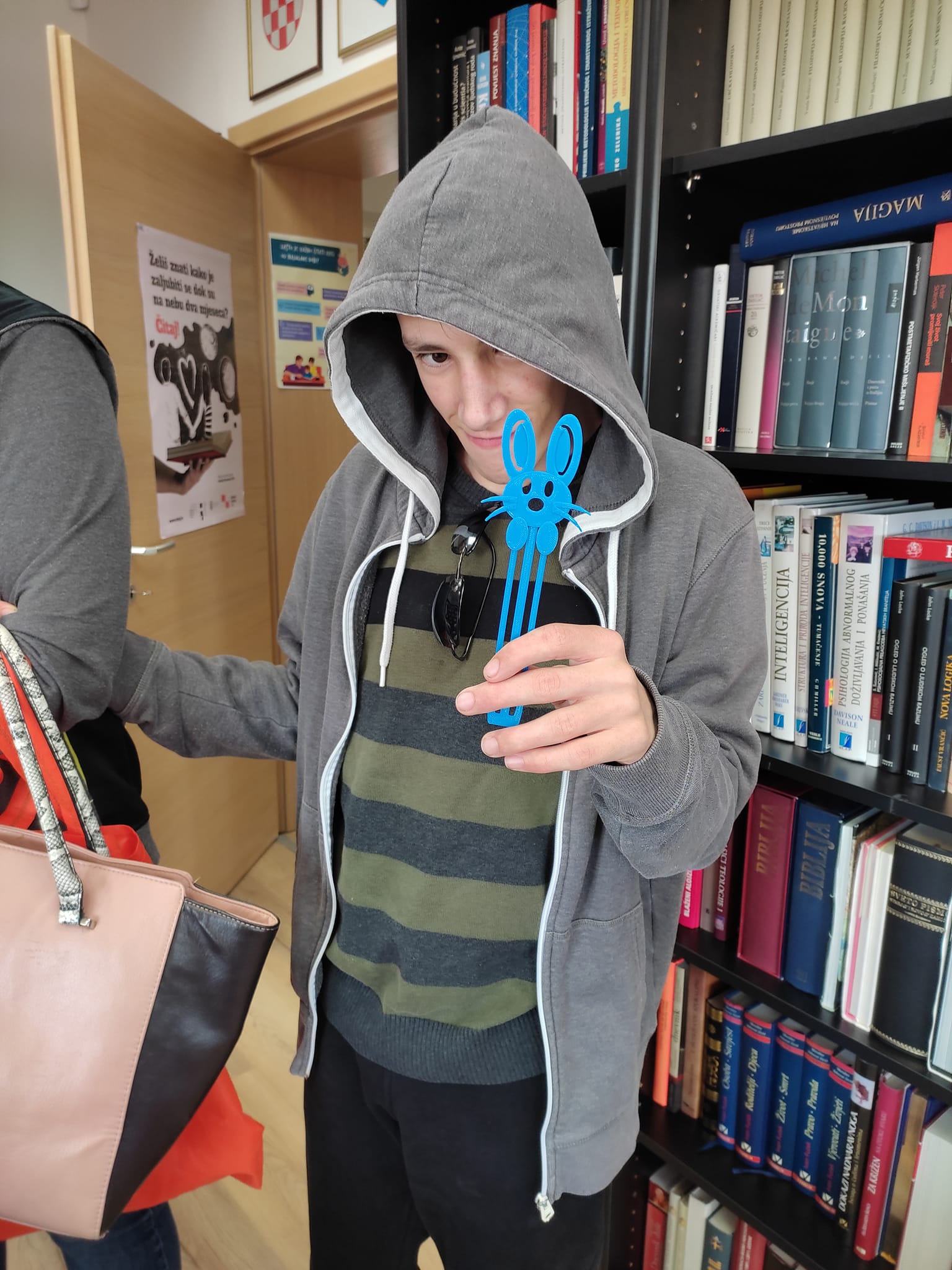 Crtanje 3D olovkama uvijek oduševi djecu, a i nas njihova kreativnost! Iako prvi put imaju 3D olovku u rukama, ne nedostaje kreativnosti i ideja. Dok smo mi crtali uskršnje motive 3D olovkama, 3D printer je izrađivao straničnike s motivom zeca. Našem korisniku Vlatku su se toliko svidjeli naši zečići te smo odlučili odmah mu jedan i pokloniti!