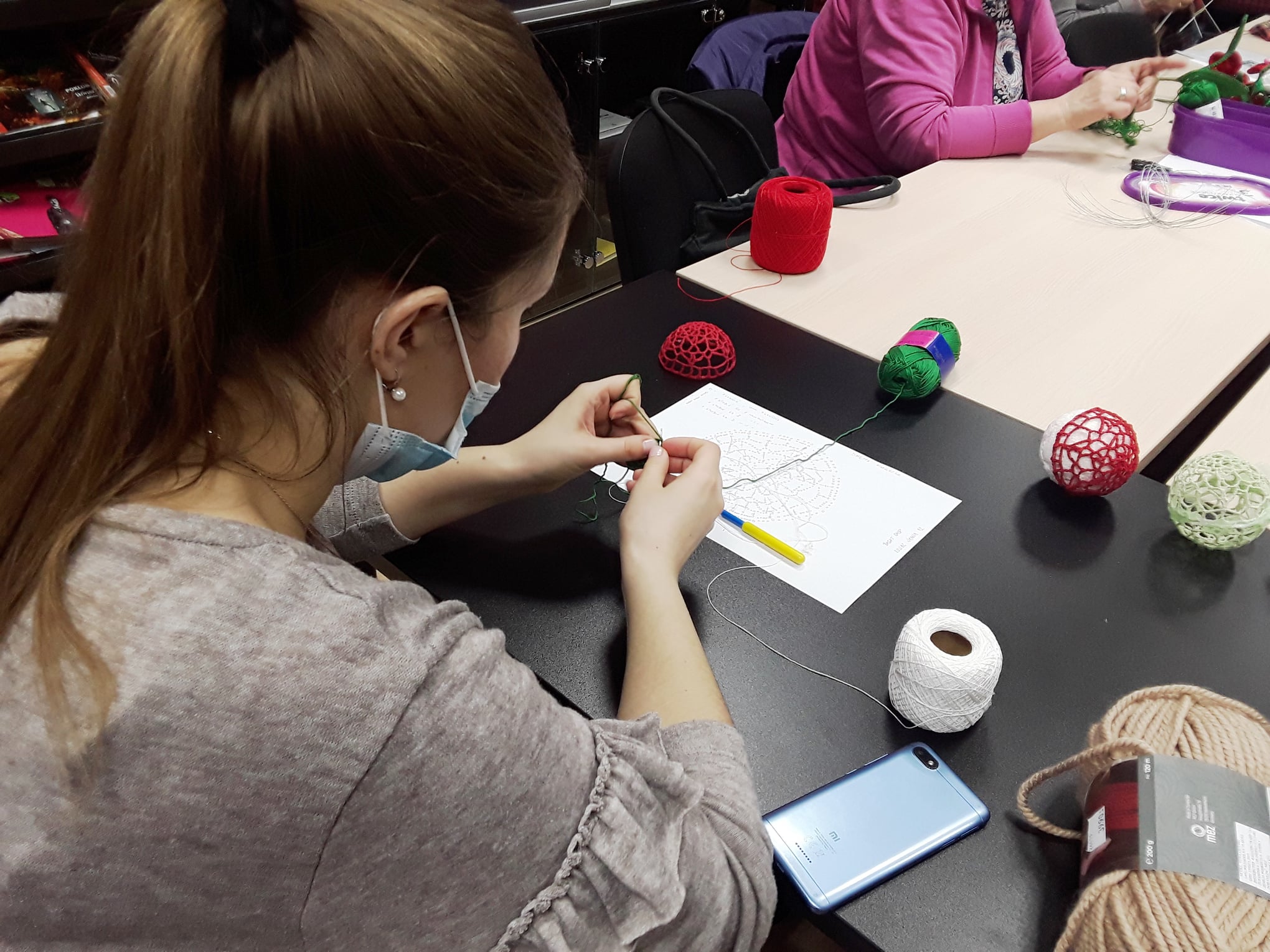 Polaznice su željele naučiti heklati kuglice za bor. Osim ukrasa za bor, naša je mentorica Marija Gregić ponijela još svojih lijepih uradaka heklanih “plišanaca”, motivirajućih uzoraka za one koji žele naučiti još nešto novo.