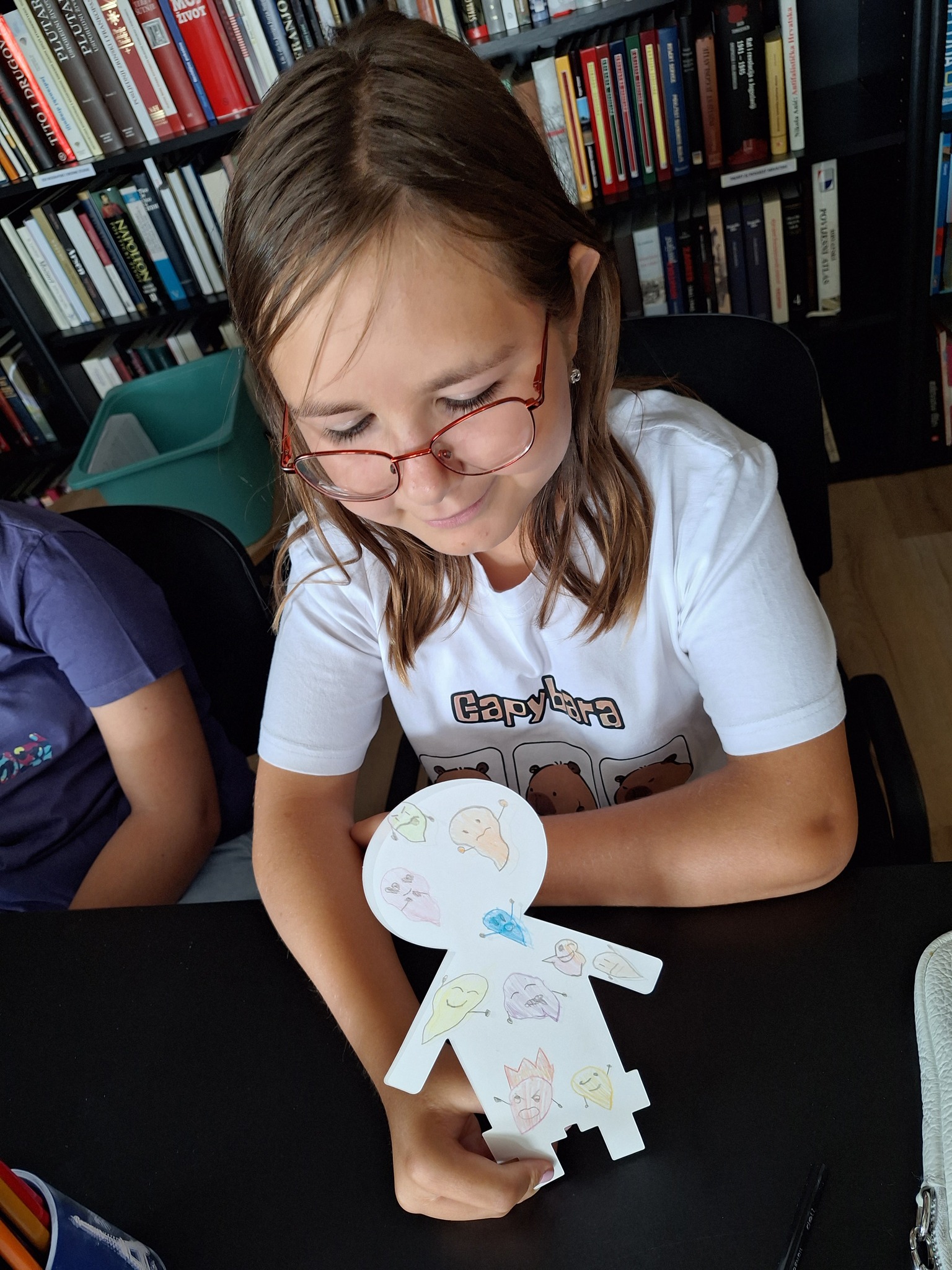 Nakon čitanja i opisivanja osjećaja, uslijedio je kreativni dio pri čemu su djeca na silueti osobe bojama trebala prikazati osjećaje. Neki su izabrali sreću, ljubav, neki strah, ljutnju, a jedna je djevojčica prikazala više osjećaja.
