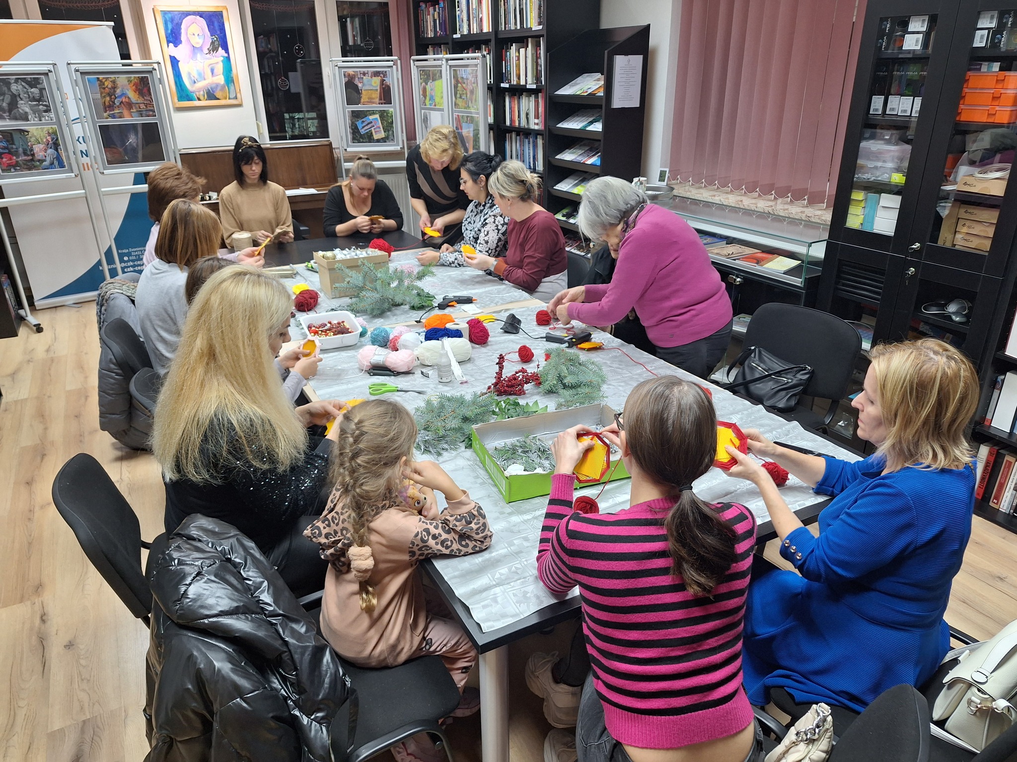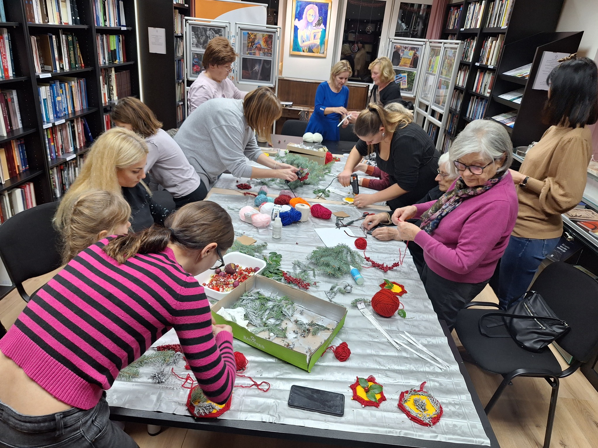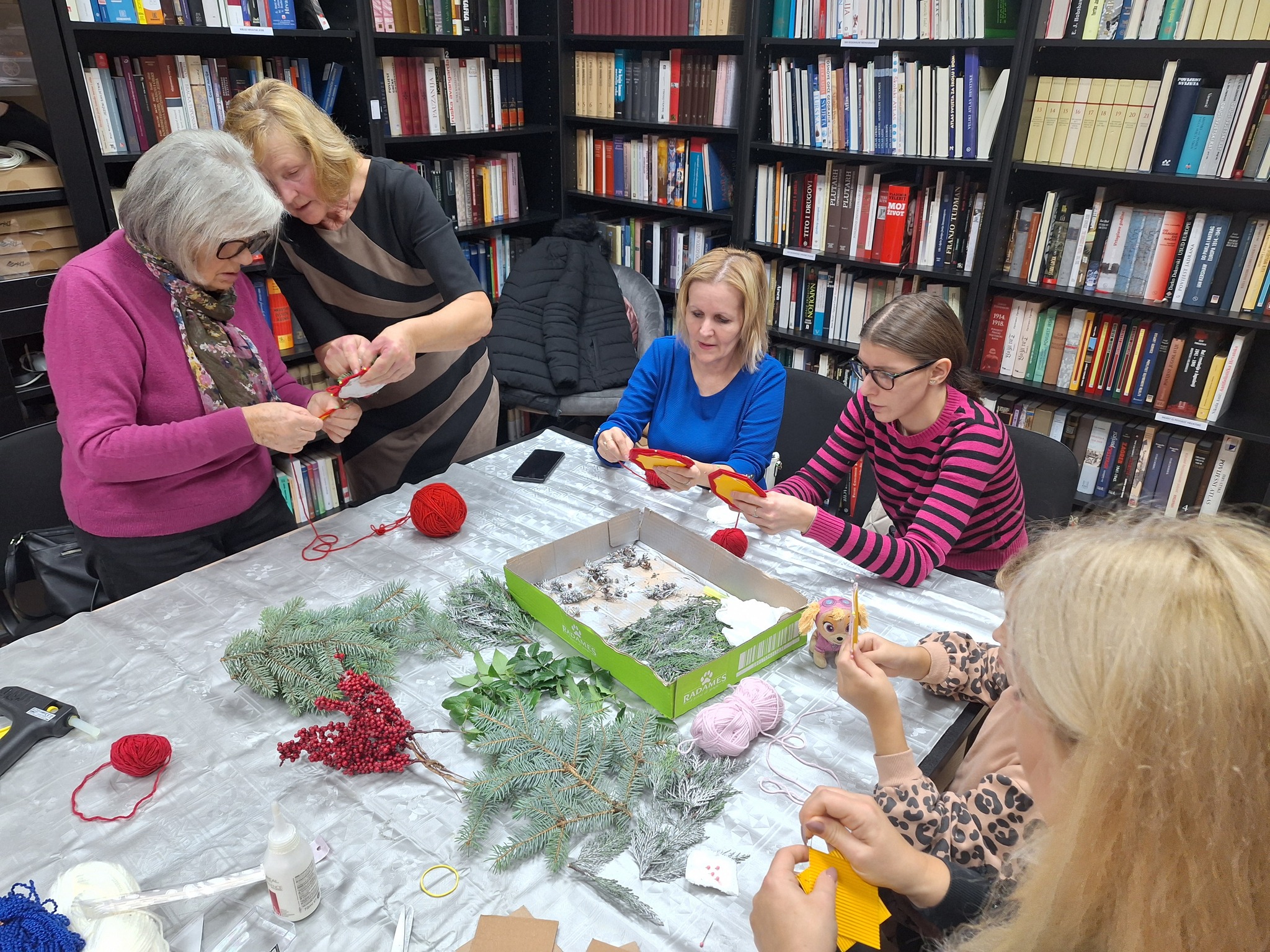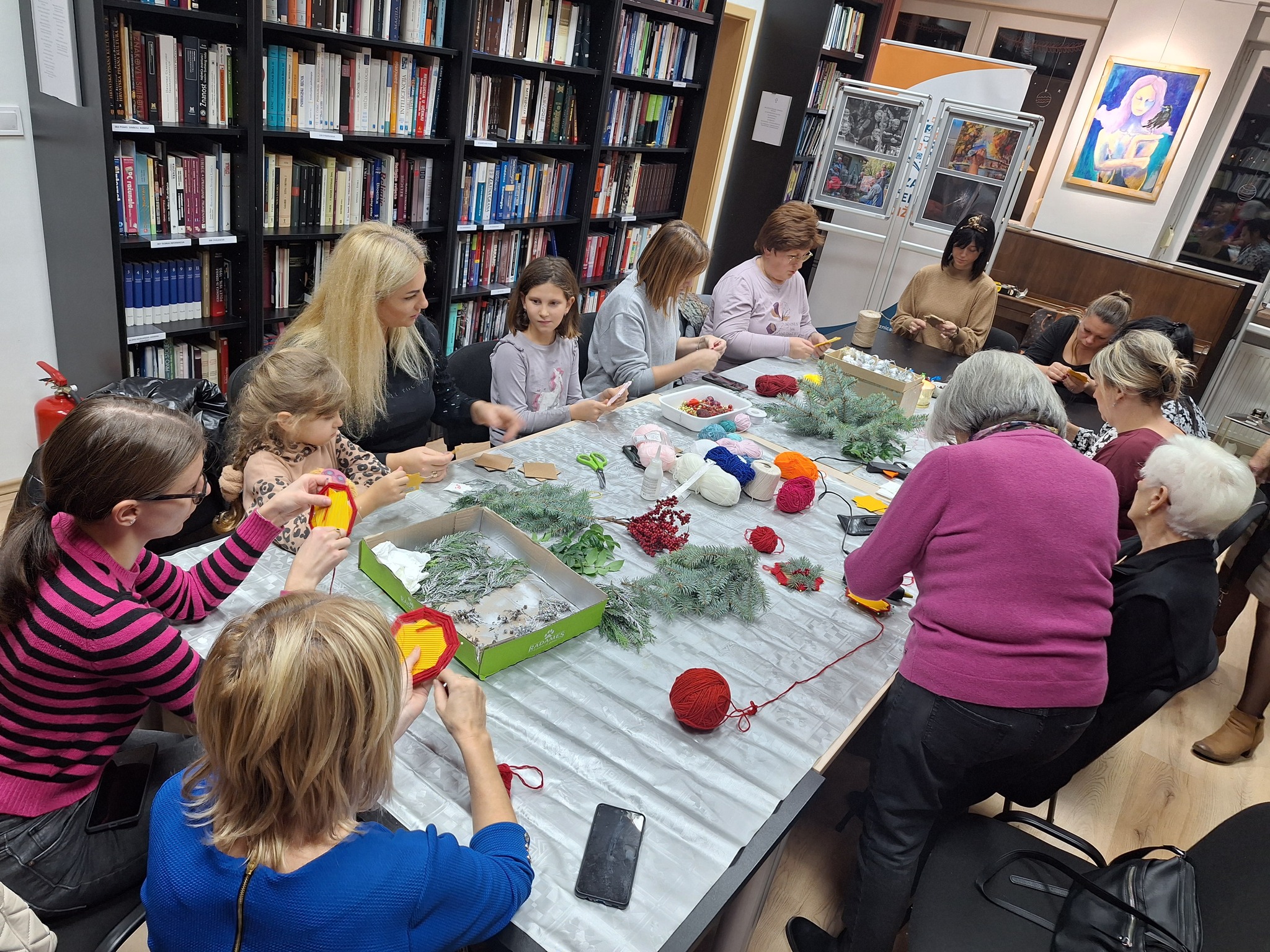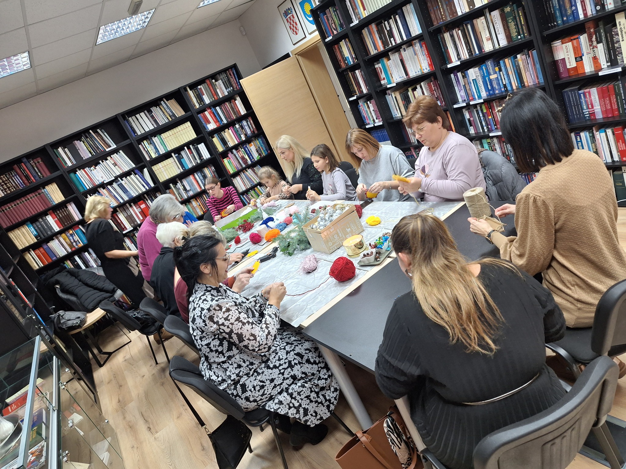 U ponedjeljak, 2. prosinca, naša je Čitaonica doista bila dnevnim boravkom zajednice zahvaljujući gospođi Mariji Anđelić koja je vodila radionicu izrade božićnih ukrasa. Polaznicama je pokazala dva modela: jedan od kartona i vune, a drugi od plodova iz prirode. Polaznice su ove jednostavne podloge ukrasile grančicama, trakicama i perlicama te tako kreirale predivne ukrase.