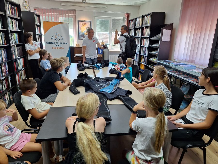 Već treću godinu zaredom, u suradnji s Društvom podvodnih aktivnosti Slavonija, provodimo radionicu ronilačkog sporta. Romana, Igor i Vjekoslav su djeci na zanimljiv način predstavili ovaj lijep, ali i opasan sport i svu potrebnu opremu koja je danas sofisticirana kako bi sigurnost bila na najvišem mogućem nivou.