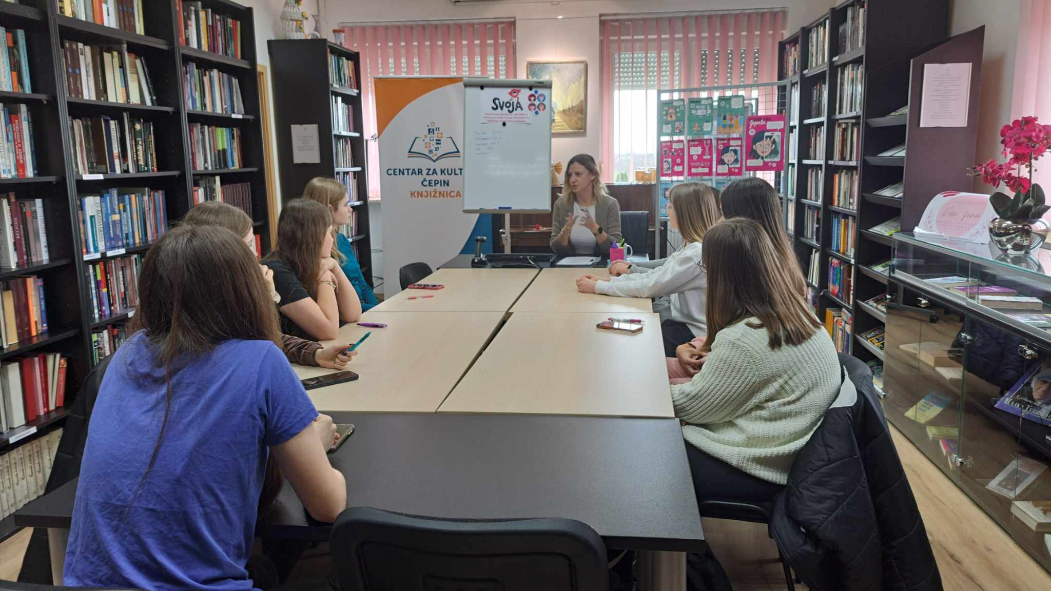 U ovom smo tjednu održali tri radionice s djevojčicama iz 7.a, 7.b, 7.c i 6.c razreda OŠ Miroslava Krleže. Radionice su provedene u sklopu projekta SVOJA koji osnažuje djevojčice i djevojke u odnosu na rodne i druge stereotipe na internetu i društvenim mrežama. Kroz različite aktivnosti i grupne rasprave obradili smo sve važne teme o objavljivanju na društvenim mrežama, a učenice su potaknute na kritičko mišljenje, dijalog i izražavanje vlastitog mišljenja. Vrlo komunikativne i suradljive, aktivno su sudjelovale u raspravama. Zahvaljujemo Knjižnici i čitaonici Grada Preloga na ustupljenim materijalima.