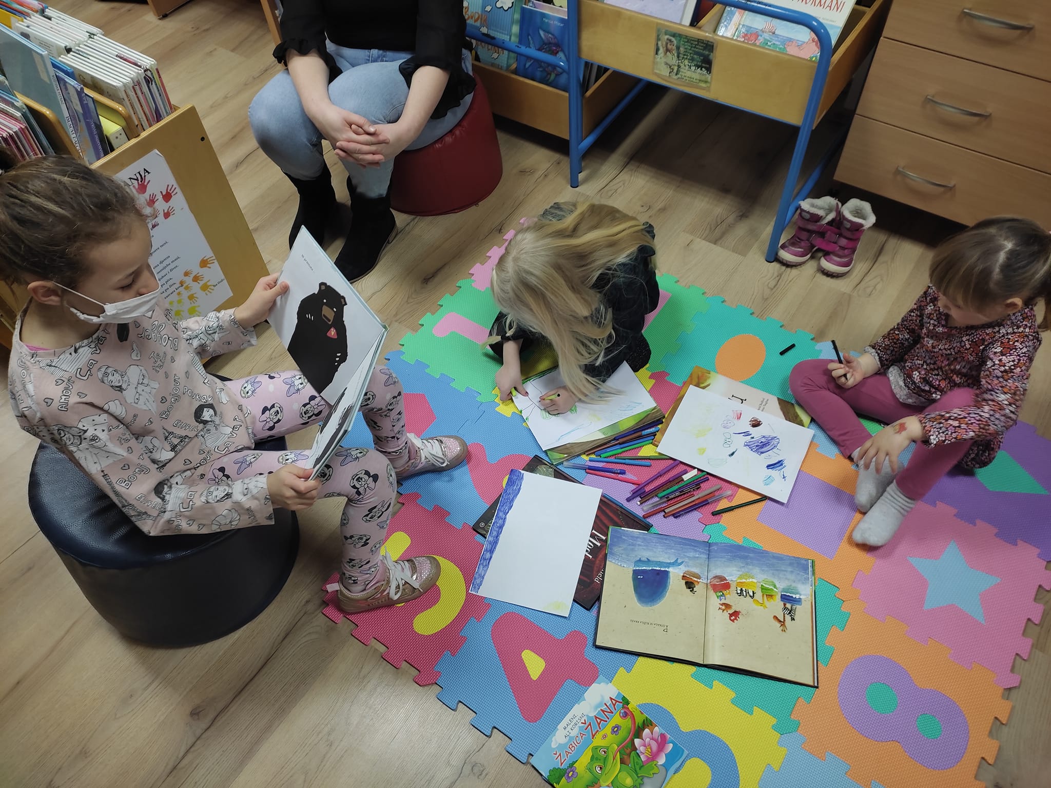 Ovomjesečni susret “Vrijeme je za priču…” obilježili smo čitanjem ‘zelenih’ slikovnica. Pročitali smo Potragu te nacrtali zelenu oazu za kojom su tragali likovi iz naše priče. Dok su djevojčice marljivo crtale, Arijina nam je mama pročitala slikovnicu o korisnoj žabici Žani. Za kraj nam je Nika pročitala Medu koji voli grliti. Naučili smo ponešto o recikliranju i o važnosti čuvanja okoliša.