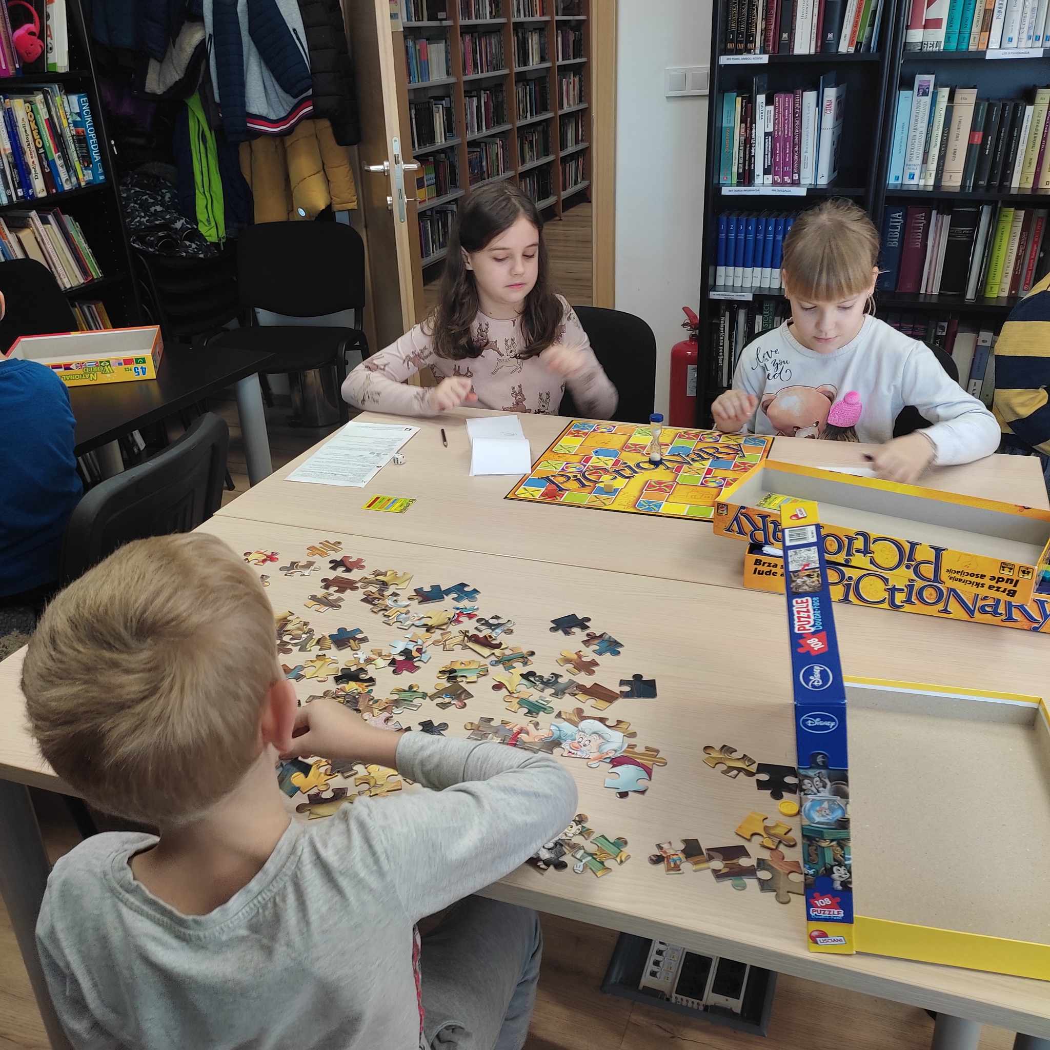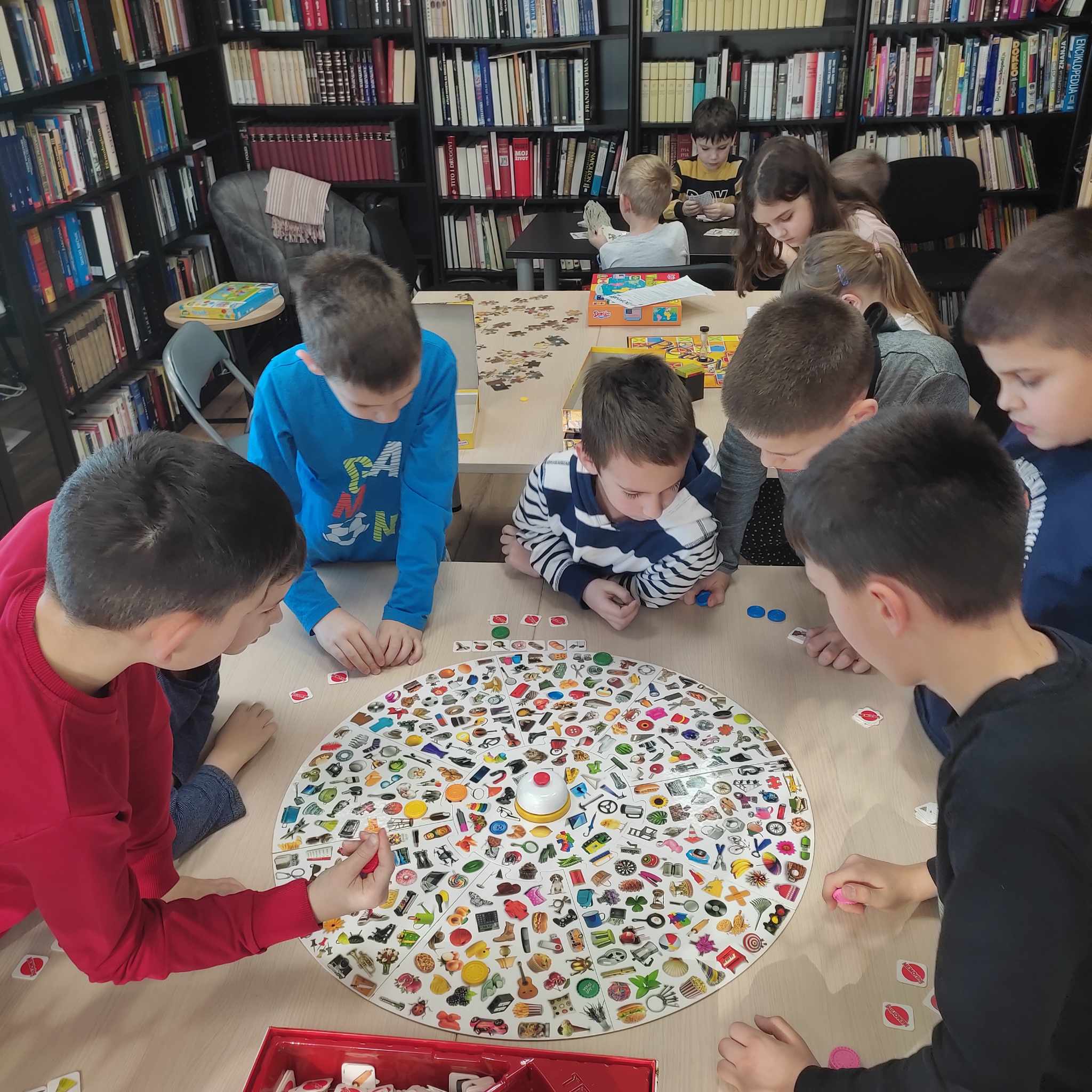 Kako bismo zimske praznike djeci učinili zanimljivijim, organizirali smo od 28. prosinca do 4. siječnja igranje društvenih igara u prostoru Knjižnice. Kroz naše igraonice prošlo je sveukupno dvadeset troje djece. Sklopila su se nova prijateljstva i zaigrale nove igre. Zabave nam nije nedostajalo, nesuglasice smo lako rješavali, a većina djece dolazila je redovno na svaku igraonicu. Na sveukupno pet igraonica zaigrali smo Alias, Igre riječima, Pictionary, Čovječe ne ljuti se, Crni petar i 4 u redu te slagali različite puzzle. Zadnjeg dana Patrik nam je donio Pictionary Air, a zaigrali smo i novu igru MEMOring te 5 sekundi. Uz društvene igre uvijek nešto novo naučimo, proširujemo svoje znanje i vještine, no najvažnije je uvažavati ostale igrače i mirno prihvatiti poraz. Našim školarcima želimo sretan povratak u školske klupe i drago nam je što su odlučili  provesti dio svojih zimskih praznika u Knjižnici.